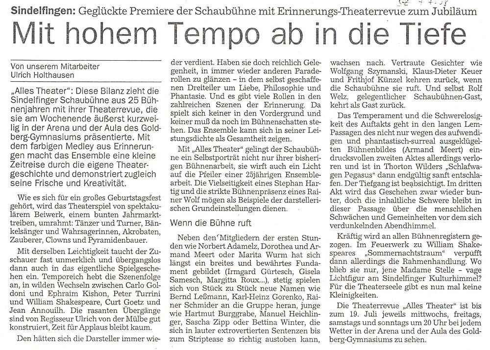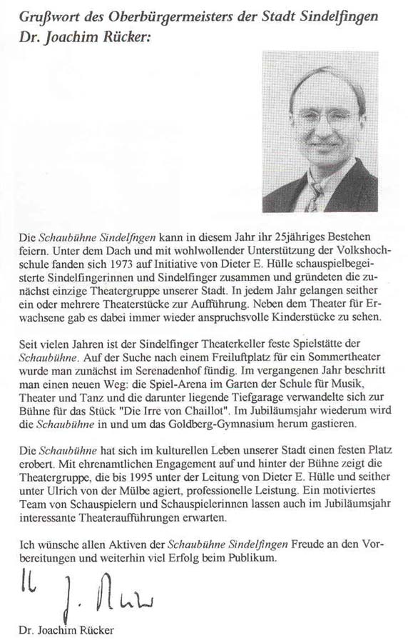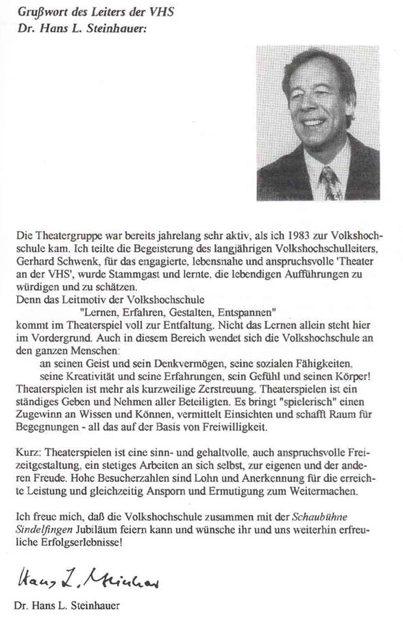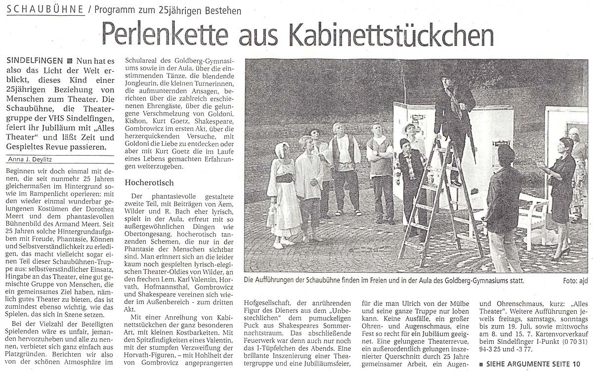 Ein Selbstporträt der Mitglieder der ersten Stunden unter der Spielleitung von Ulrich von der Mülbe zum 25jährigen Jubiläum der Schaubühne Sindelfingen