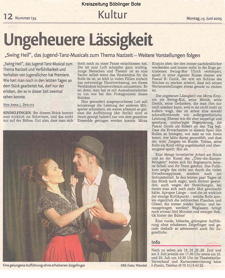 (Kreiszeitung Böblinger Bote vom 15. Juni 2009, Anna J. Deylitz)