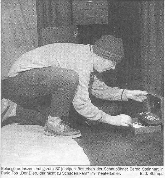Als penetrant harmloser Hanswurst der Dieb Bernd Steinhart. Katrin Schwarz, die vom Sindelfinger Ensemble DieDa dazugestoßen ist, schön besetzt auch einmal Rainer Schmider als unerbittlicher Ordnungshüter,