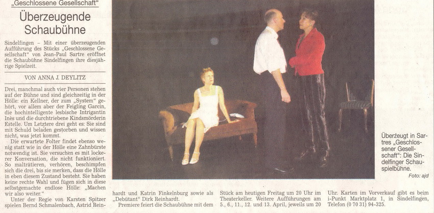 | Überzeugende Schaubühne Kreiszeitung Böblinger Bote vom 4. April 2008 (Anna J. Deylitz) |