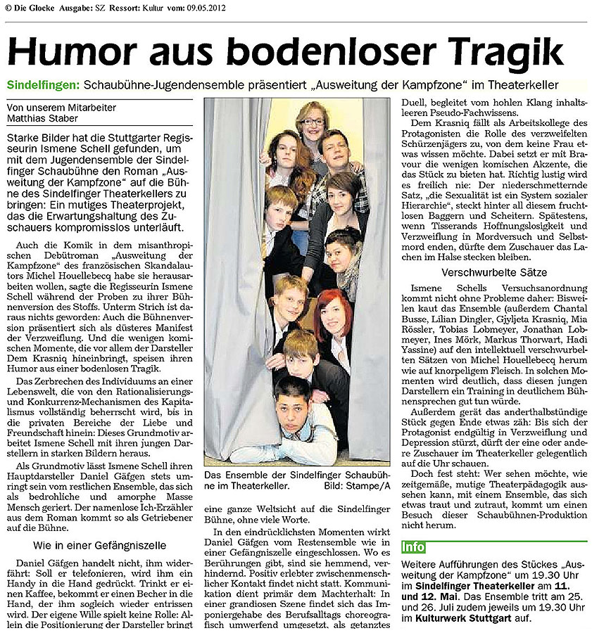 | Humor aus bodenloser Tragik SZ/BZ vom 9. Mai 2012 (Matthias Staber) |